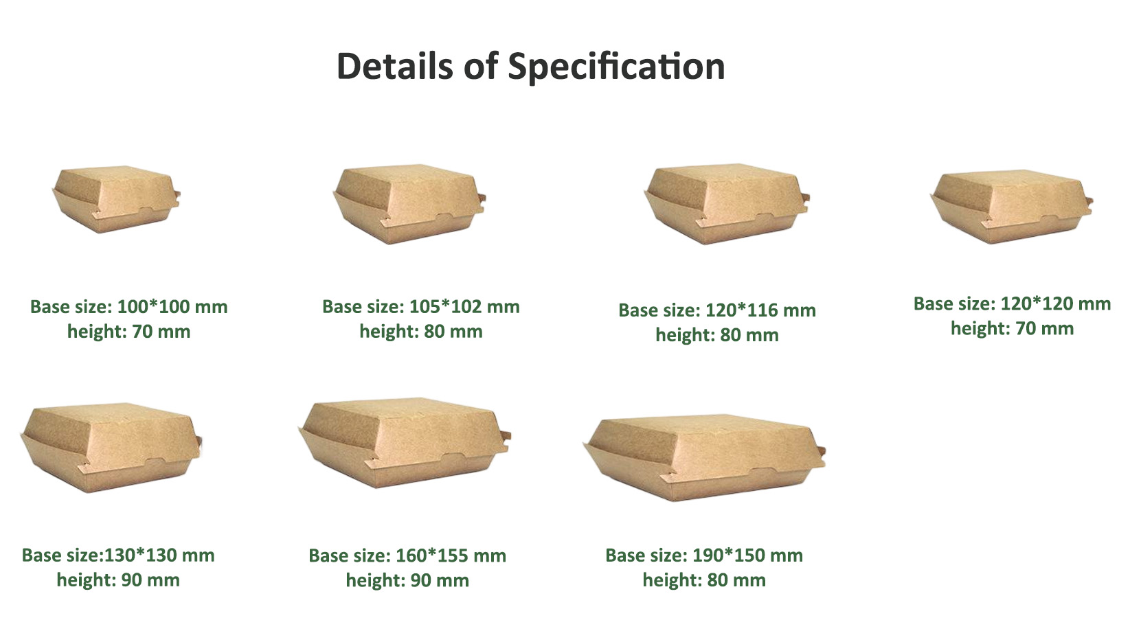 JF25-BK100-190 Series kraft paper burger boxes with various sizes to choose and personal logos are available.