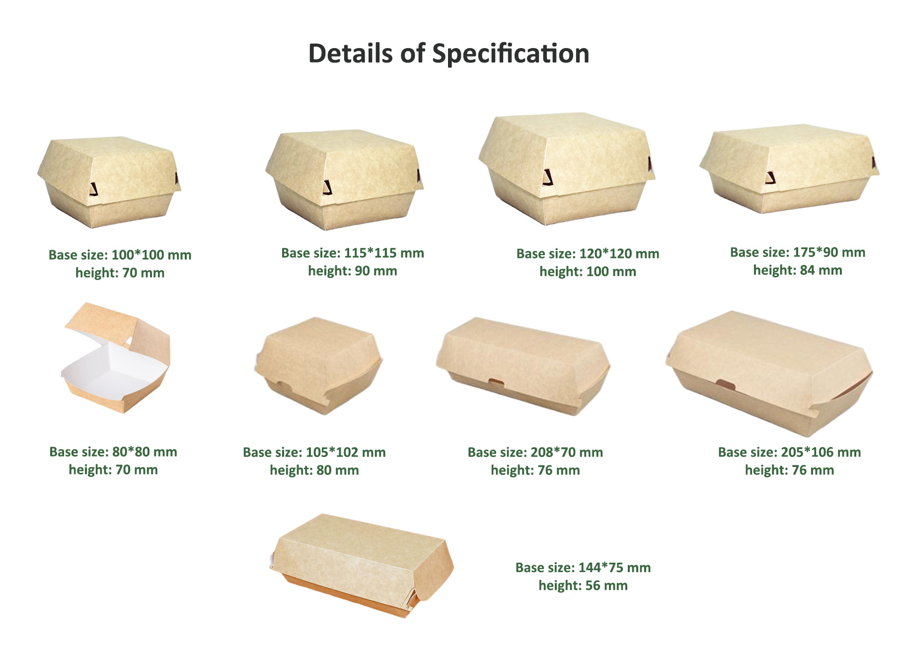 JF25-CK80-208 Series coated kraft paper burger boxes with various sizes to choose and personal logos are available.