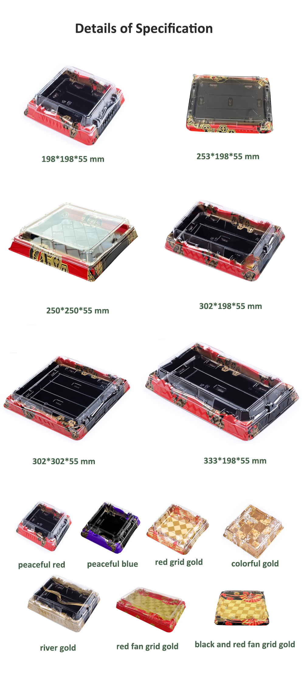 JF Series printed sushi boxes are our general food packaging for take out, there are multiple sizes available.