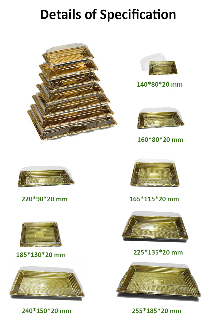 JF1-1000-08 golden disposable sushi containers with courtly style