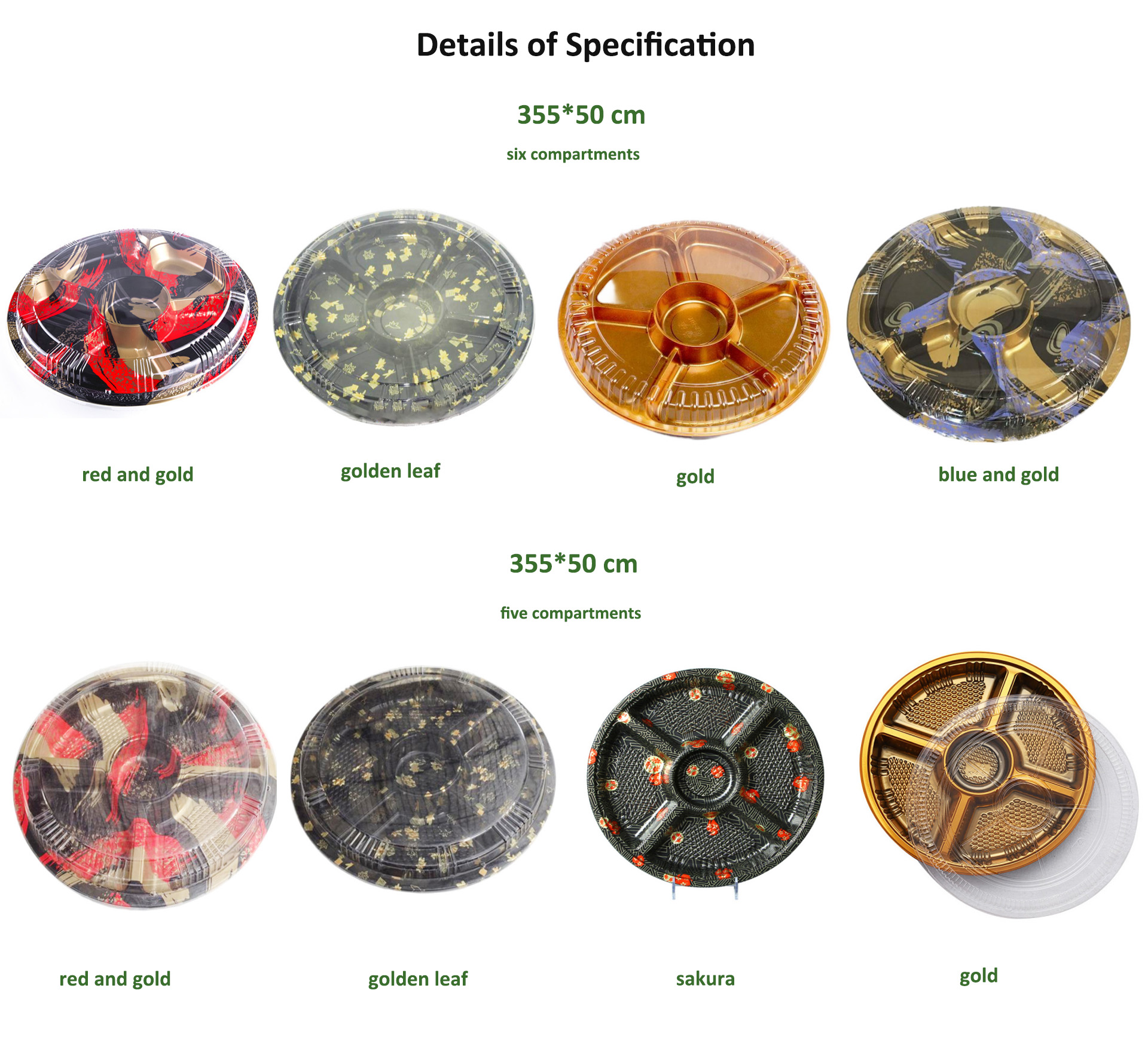 JF Series sushi printed party trays with comparments are our general Japanese food packaging for sushi, there are various sizes and printings you can choose.