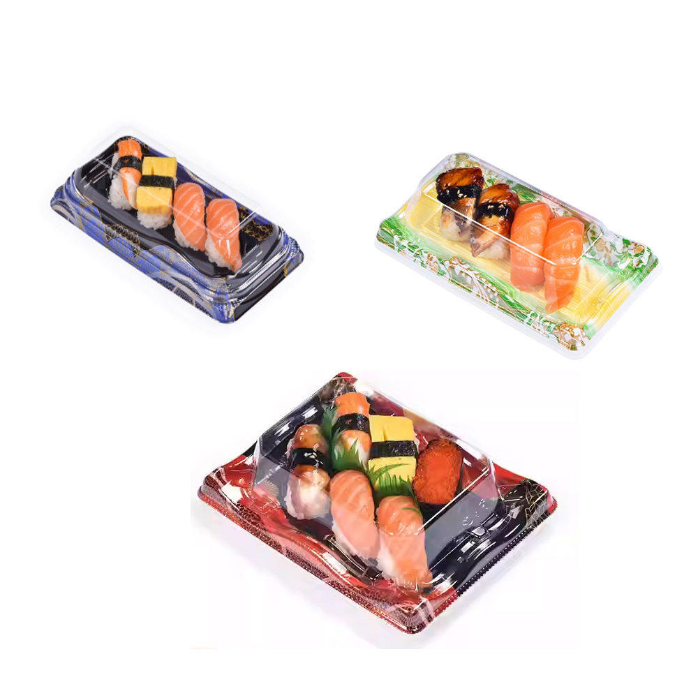 JF Series printed sushi trays are our general Japanese food packaging for sushi, salmon, etc..