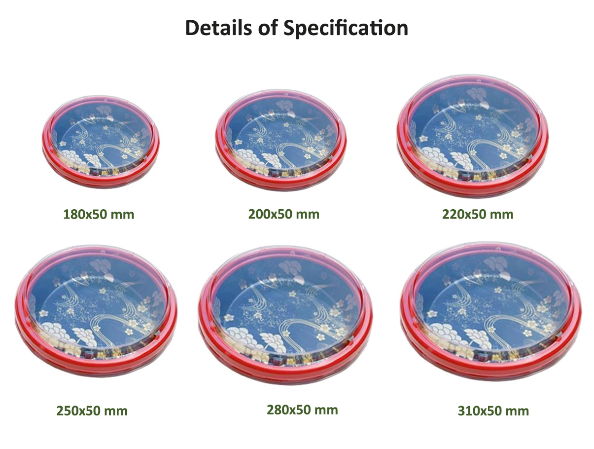 JF25-180-310 round printed sushi party trays with lids