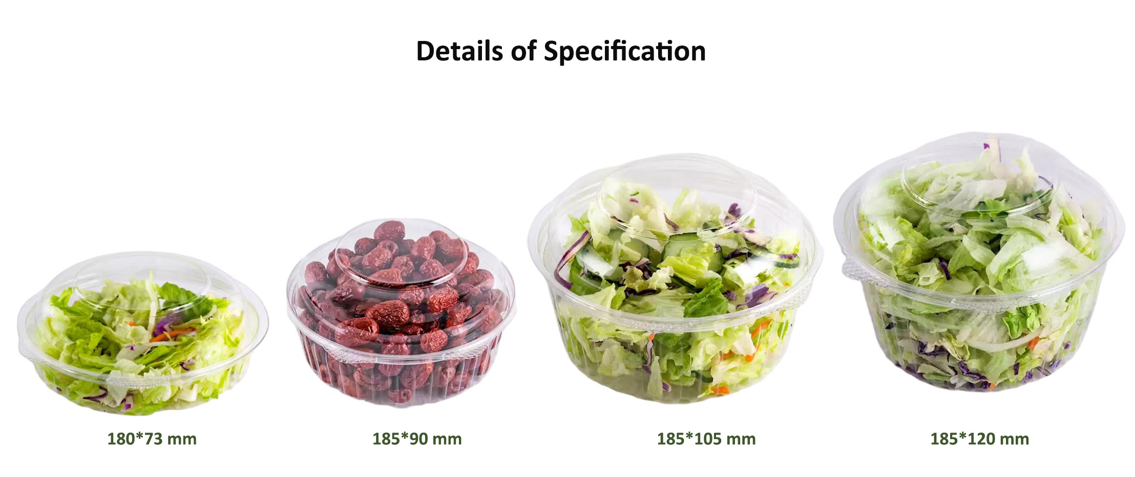 JF Series 600-1200 ml transparent salad bowls are our general food packaging for fruit, salad, noodles, etc..