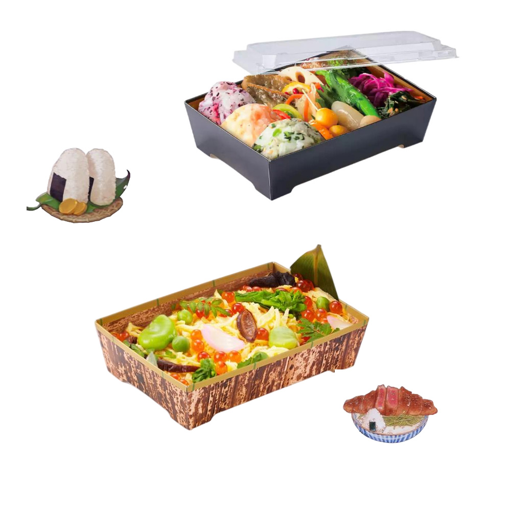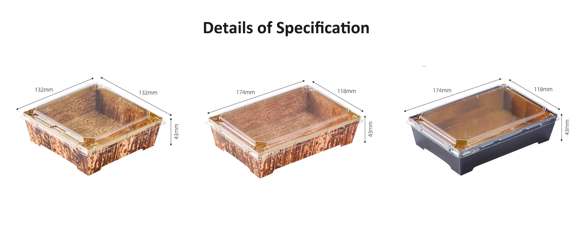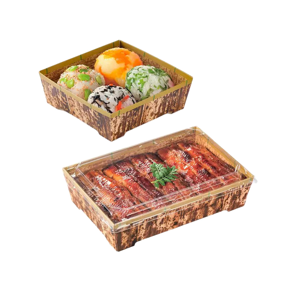 JF25P-1313-1712 kraft paper sushi containers with printing of bamboo bark pattern