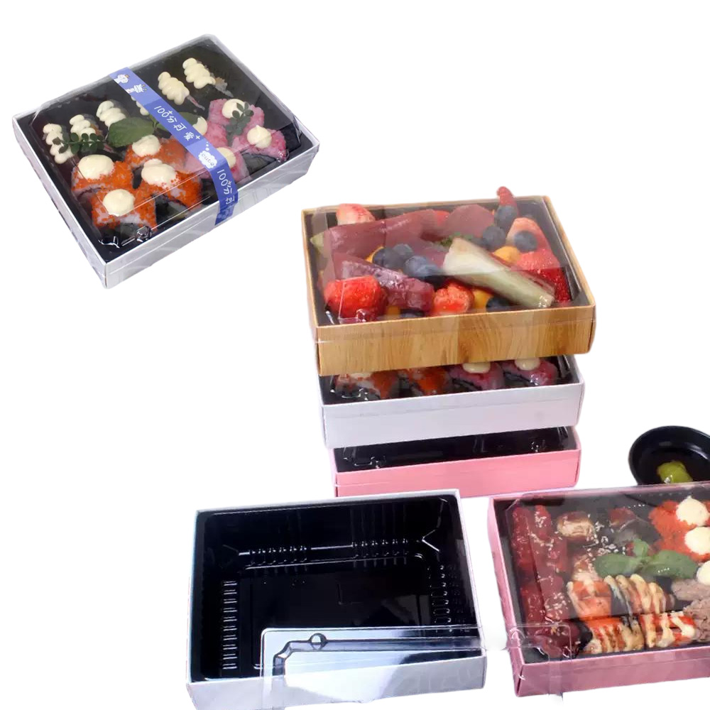JF25P-160 rectangular printed paper sushi/sashimi containers with inner trays and lids