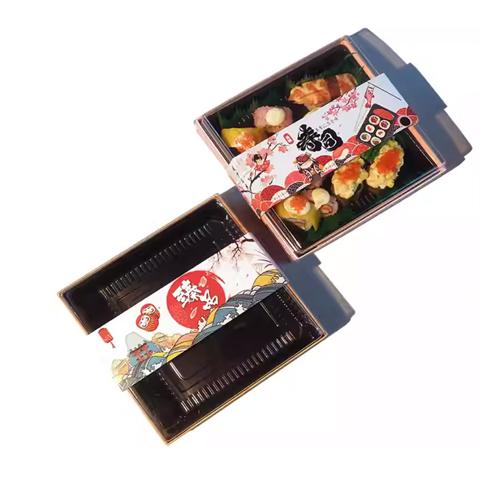 JF25P-180 square printed paper sushi/sashimi containers with inner trays and lids