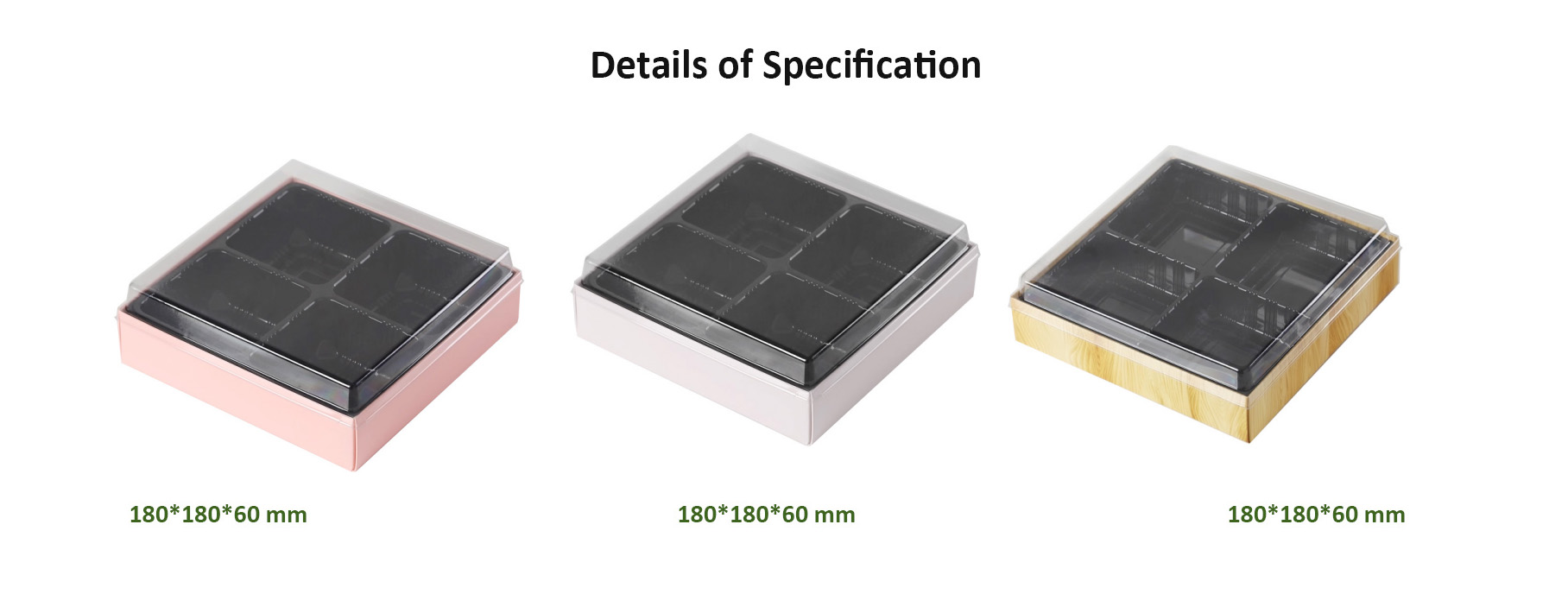 180*180*60 mm (pink), 180*180*60 mm (white), 180*180*60 mm (wood grain)