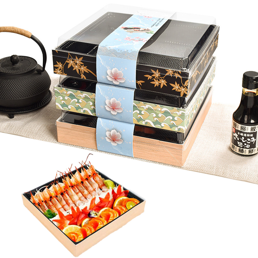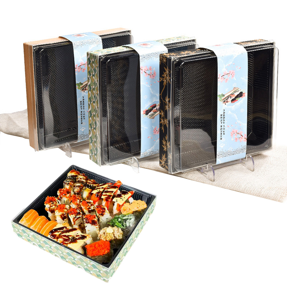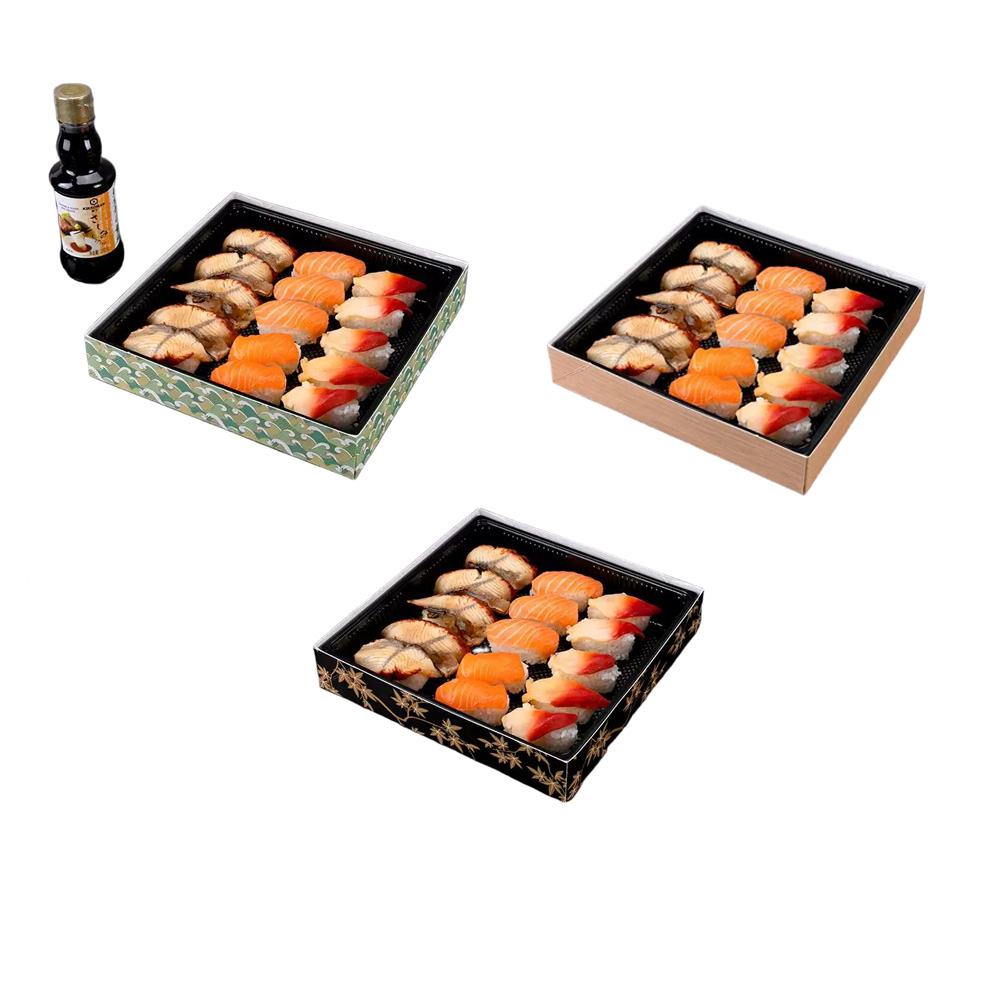 JF25P-242 square printed paper sushi/sashimi containers with inner tray and lid