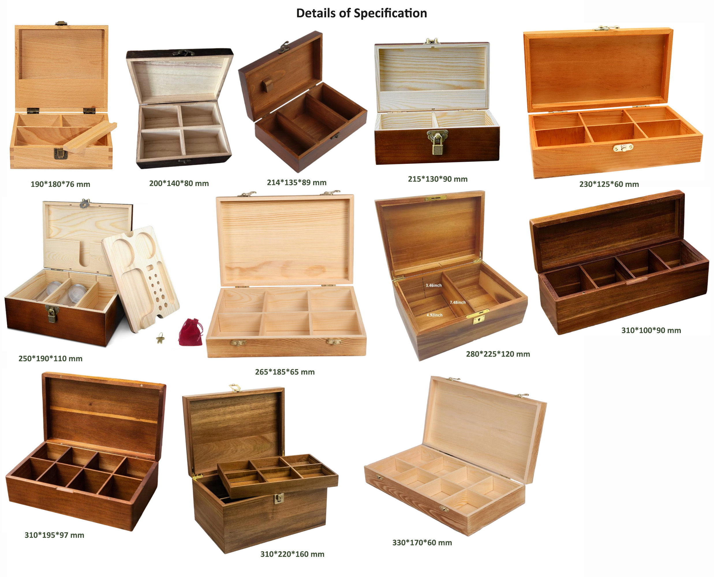 115*115*96 mm, 190*180*76 mm, 200*140*80 mm, 214*135*89 mm, 215*130*90 mm, 230*125*60 mm, 250*190*110 mm, 265*185*65 mm, 280*225*120 mm, 310*100*90 mm, 310*195*97 mm, 310*220*160 mm, 330*170*60 mm