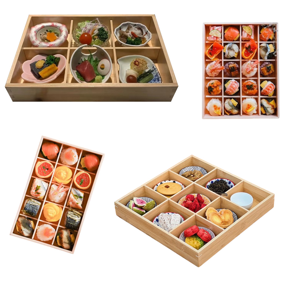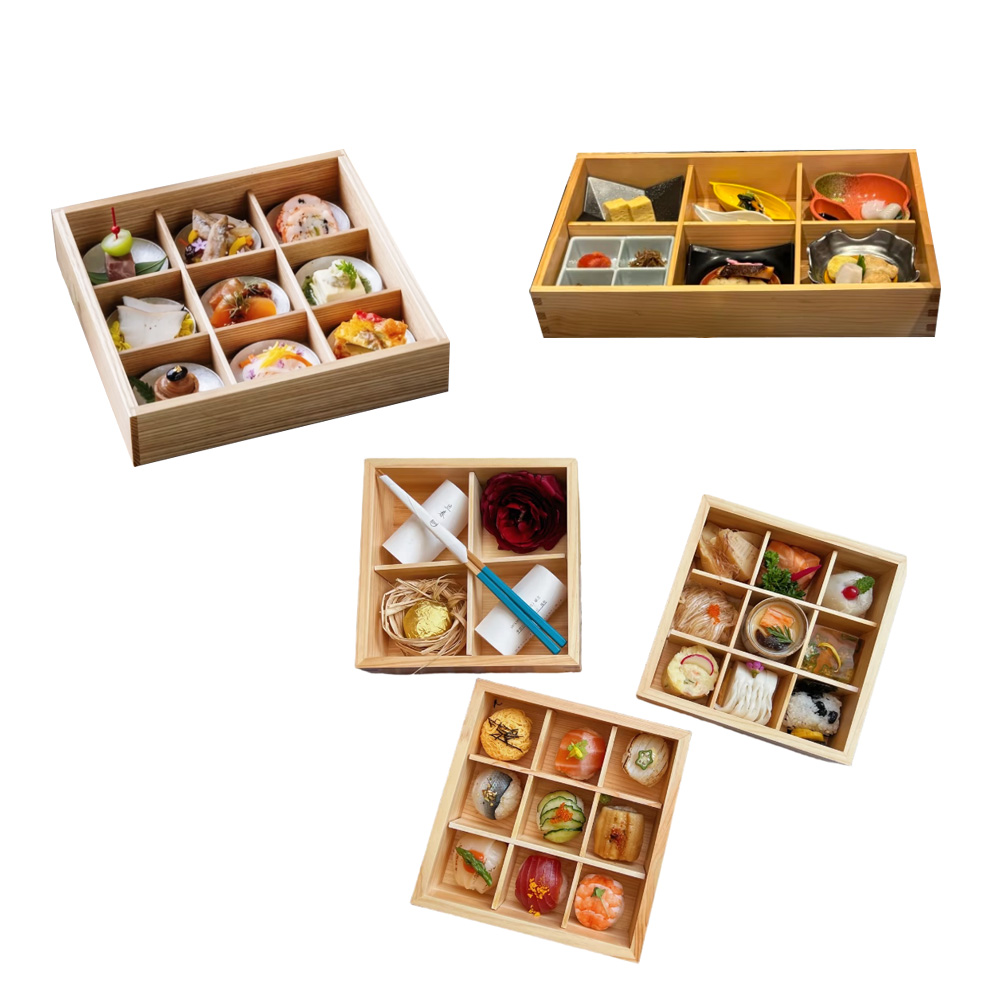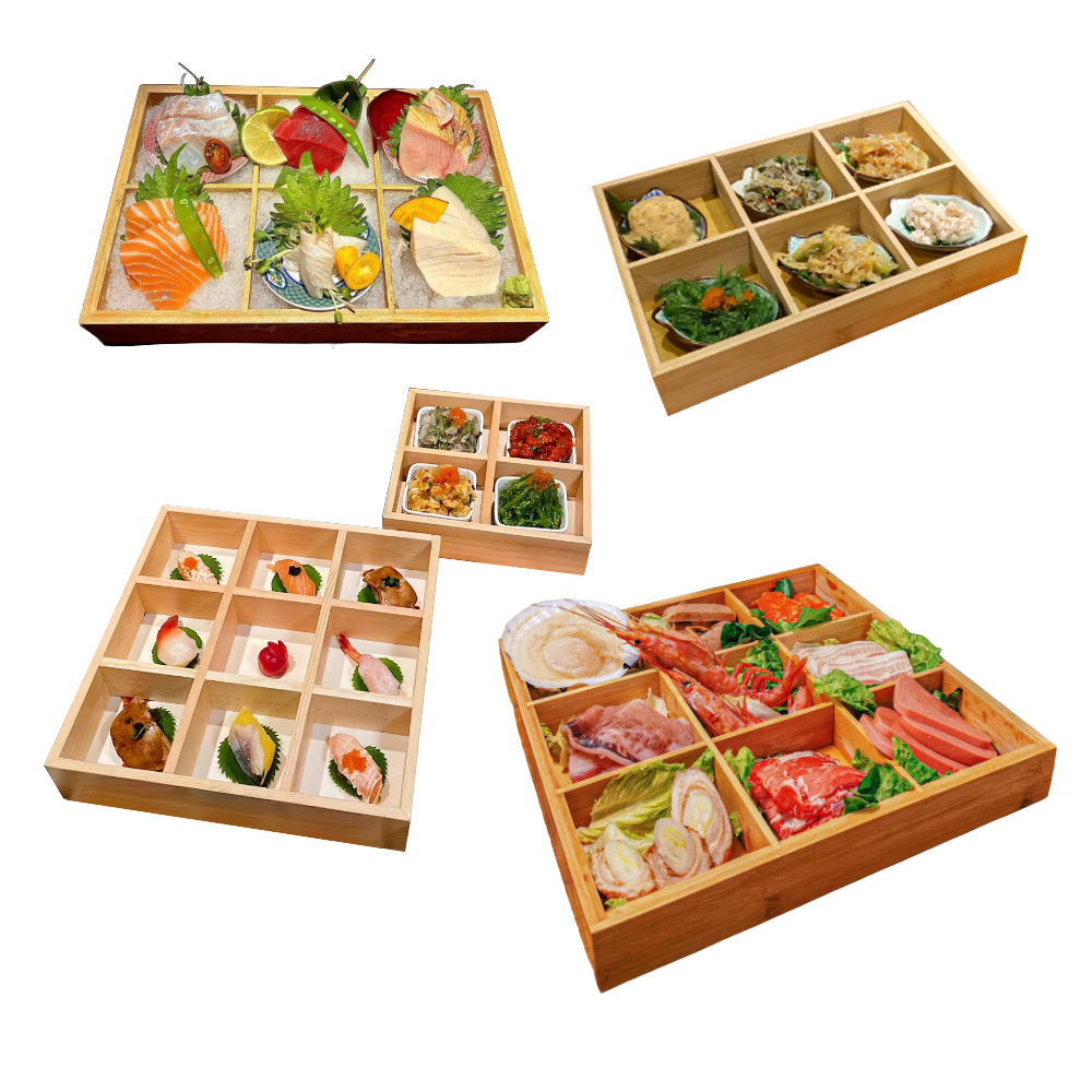 P Series wooden boxes and trays with compartments are our new lines of packaging for bread, sashimi, fruits, steak, etc.. there are various sizes that you can choose. These wooden containers are made by high quality pine wood, which is eco-friendly and environmentally.