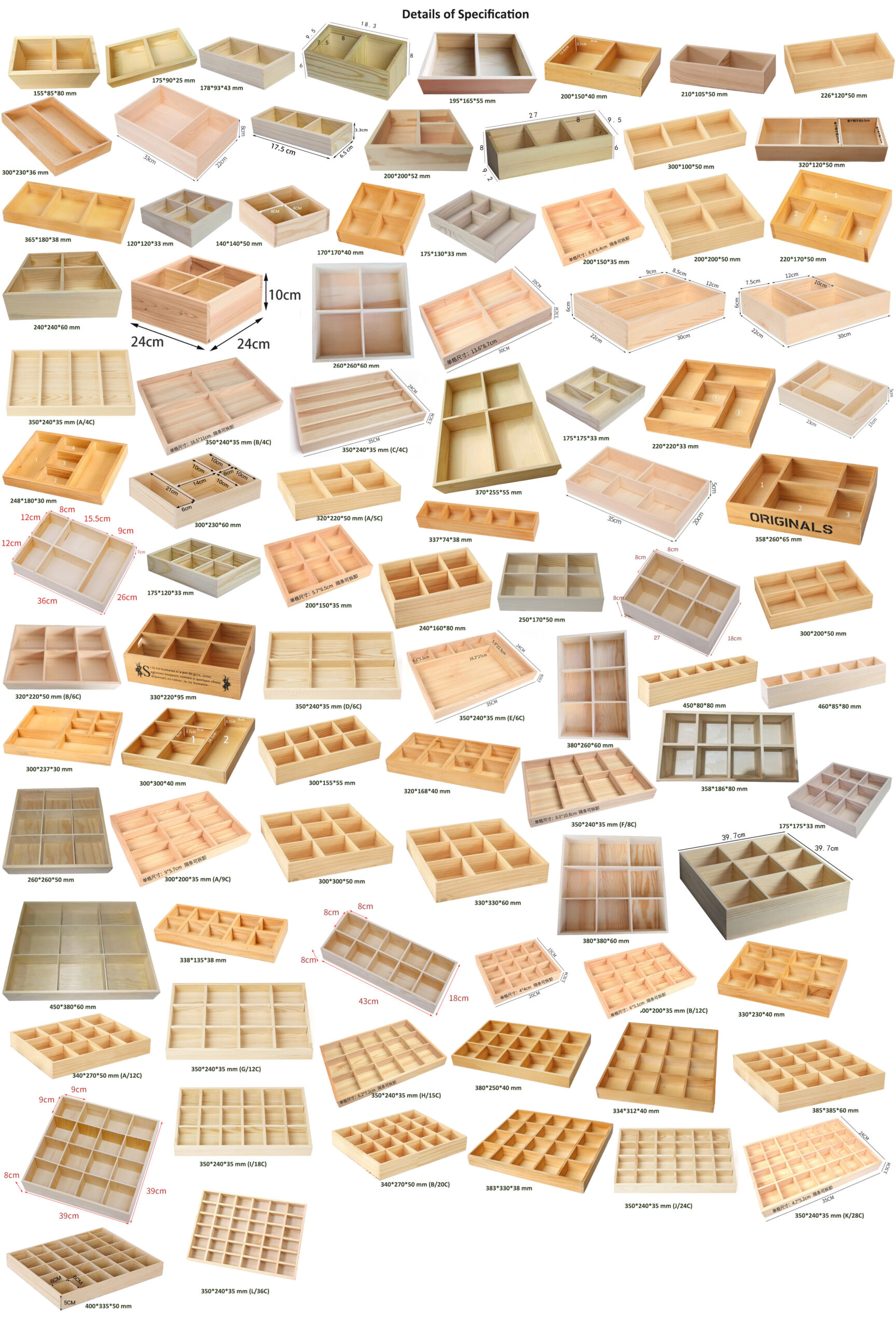 P12033-46080 wooden boxes and trays with compartments