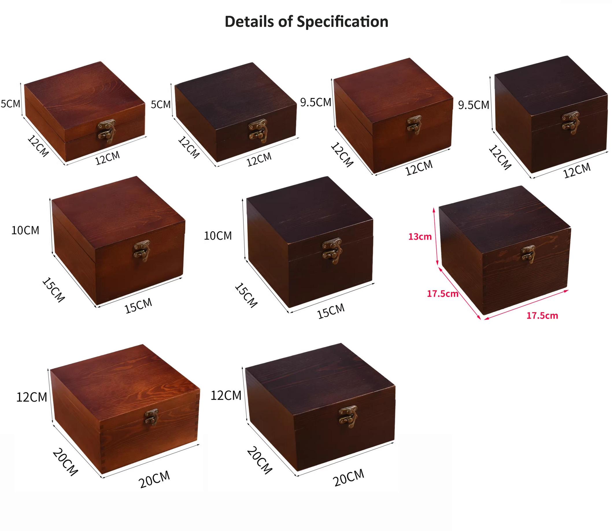 120*120*50 mm (A), 120*120*50 mm (B), 120*120*95 mm (A), 120*120*95 mm (B), 150*150*100 mm (A), 150*150*100 mm (B), 175*175*130 mm, 200*200*120 mm (A), 200*200*120 mm (B)