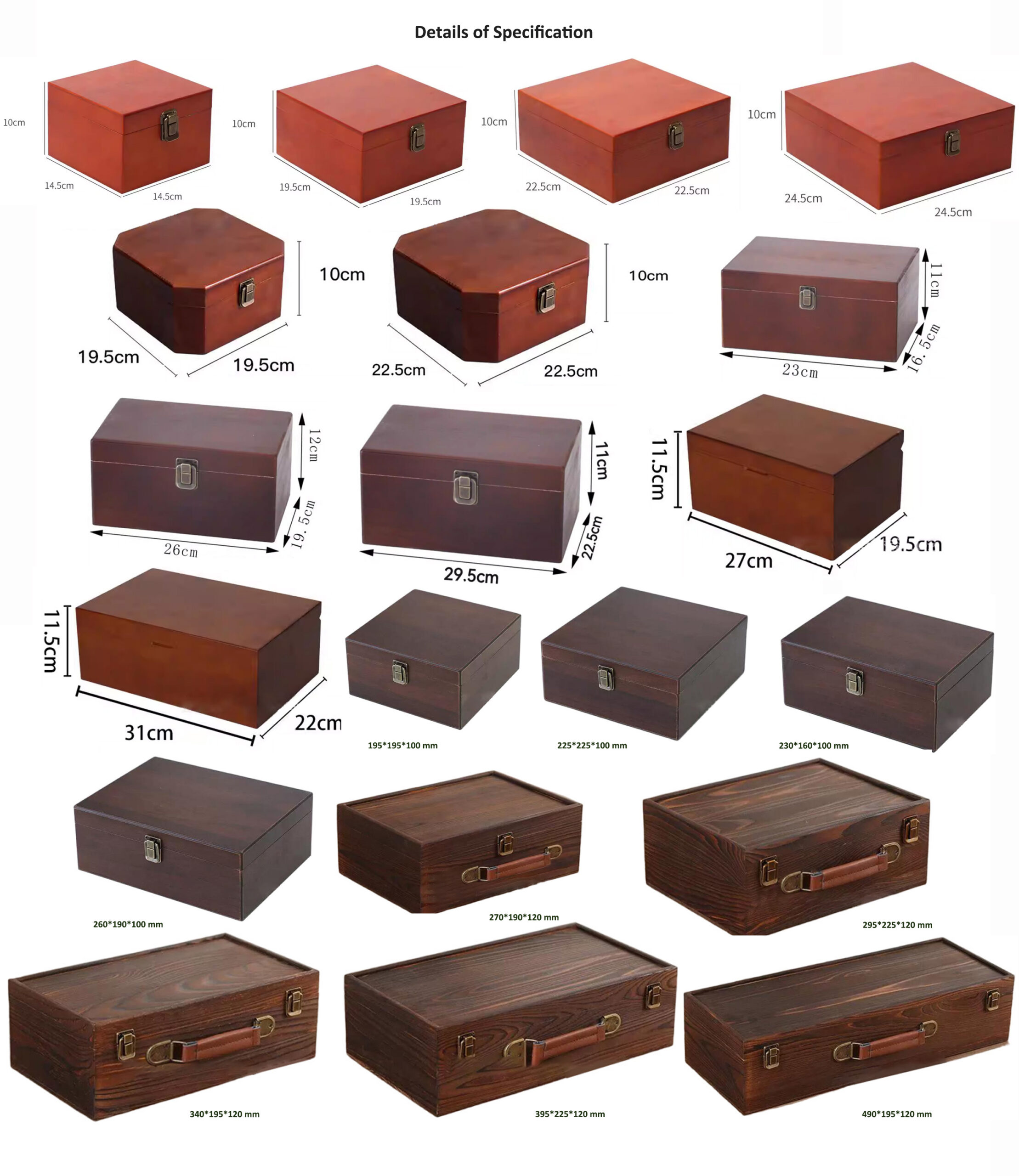 P Series wooden vintage boxes with flip lids are our new lines of food packaging for sushi, sashimi, snacks, deserts, cakes, fruits, etc. there are various sizes that you can choose. These wooden containers are made by high quality pine/paulownia/bamboo wood, which is eco-friendly and environmentally.