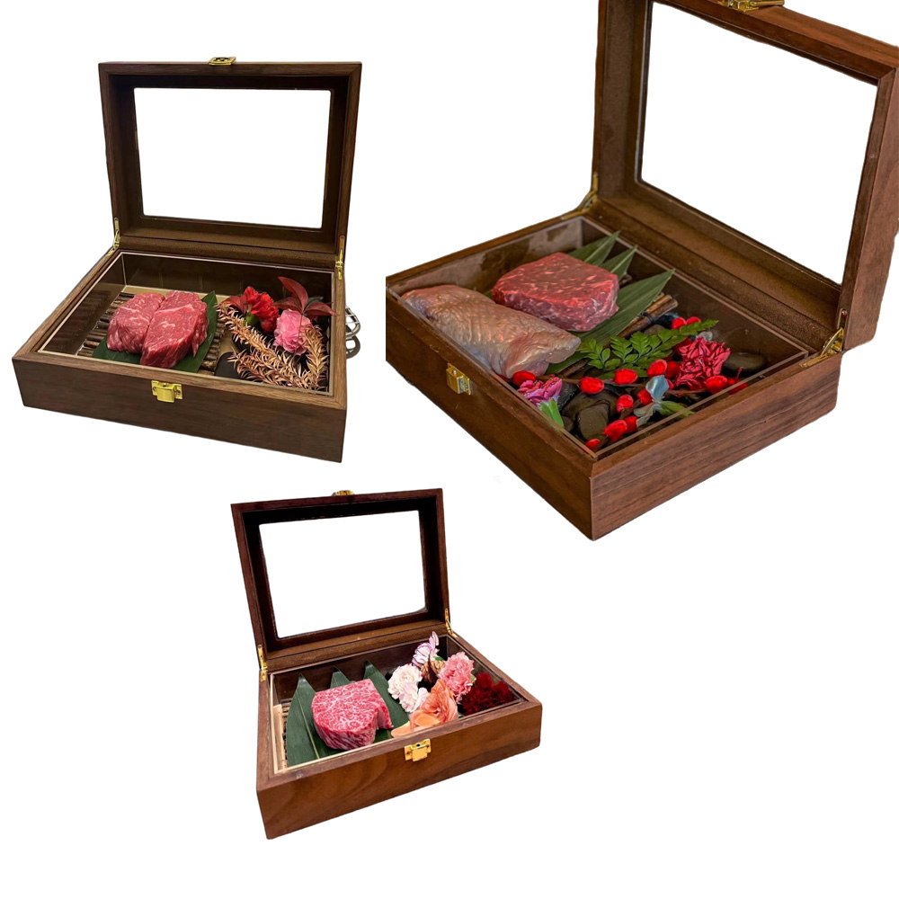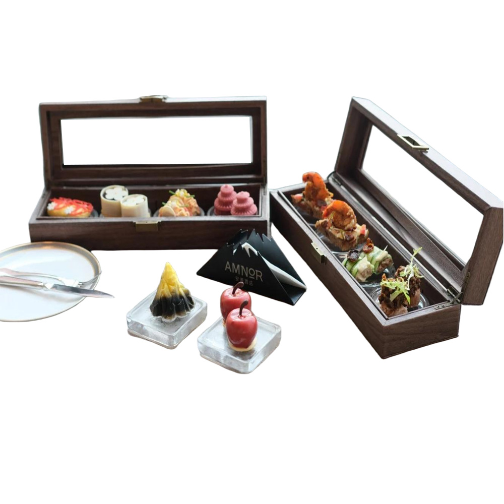P Series vintage wooden boxes with flip clear lids are our new lines of food packaging for sushi, sashimi, cakes, steak, etc., there are various sizes that you can choose. These wooden containers are made by high quality pine wood, which is eco-friendly and environmentally.