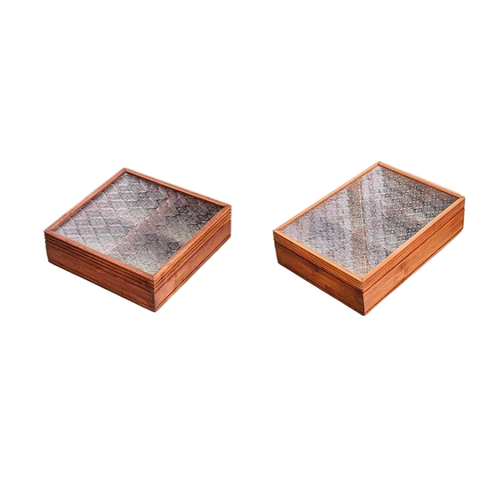 P25080-38580 wooden vintage containers with top and bottom crabapple lids and compartments