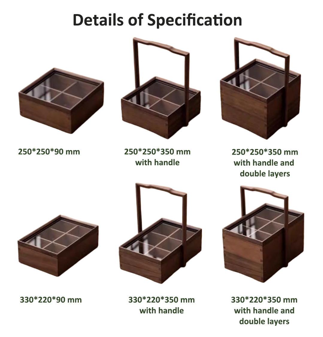 P Series wooden vintage boxes with top and bottom clear lids and compartments are our new lines of food packaging for sushi, sashimi, snacks, deserts, cakes, fruits, etc. there are various sizes that you can choose. These wooden containers are made by high quality pine wood, which is eco-friendly and environmentally.