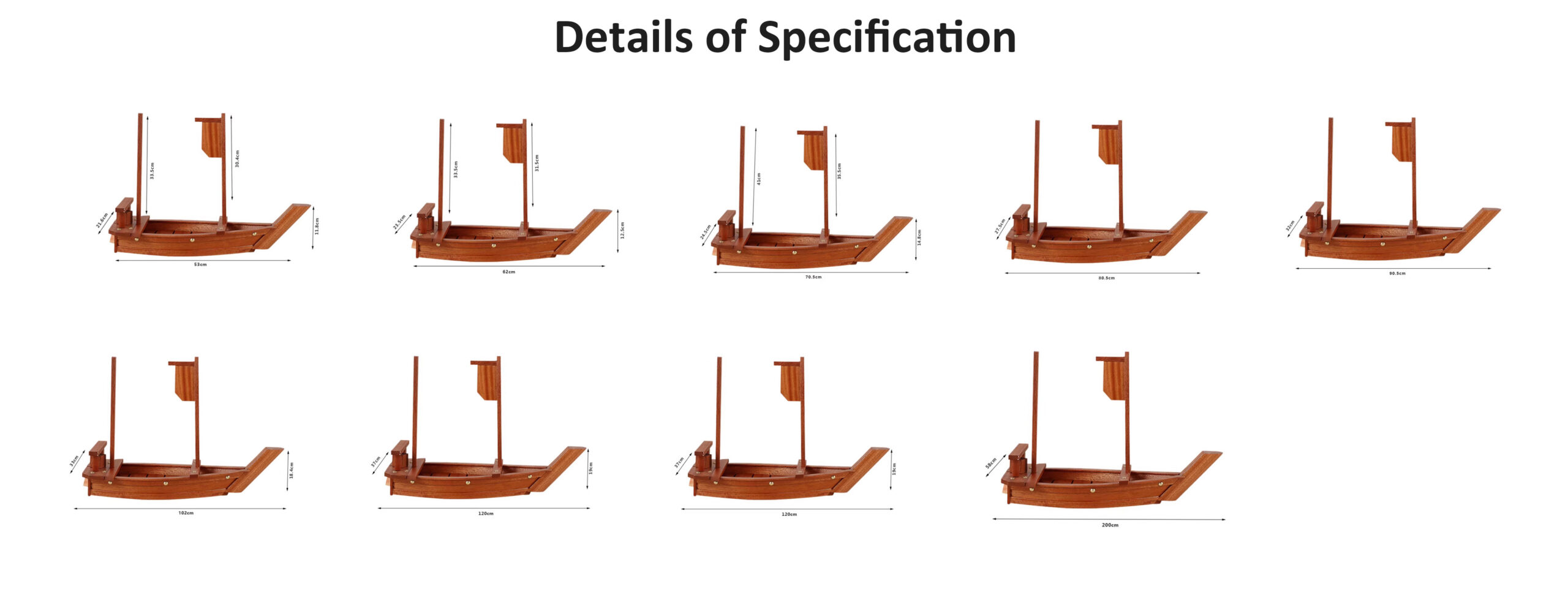 P Series wooden boat containers are our new lines of packaging for sushi, sashimi, steak, etc., there are various sizes that you can choose. These wooden containers are made by high quality sapele wood, which is eco-friendly and environmentally.