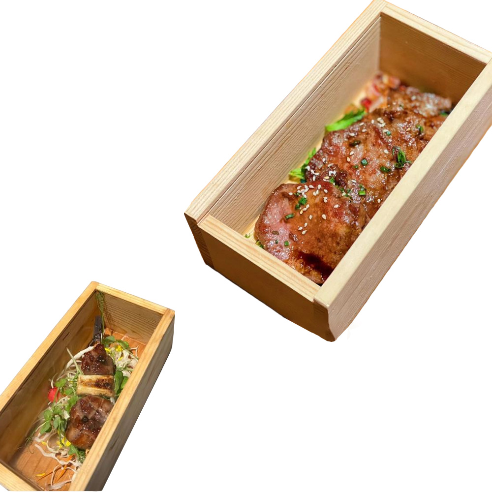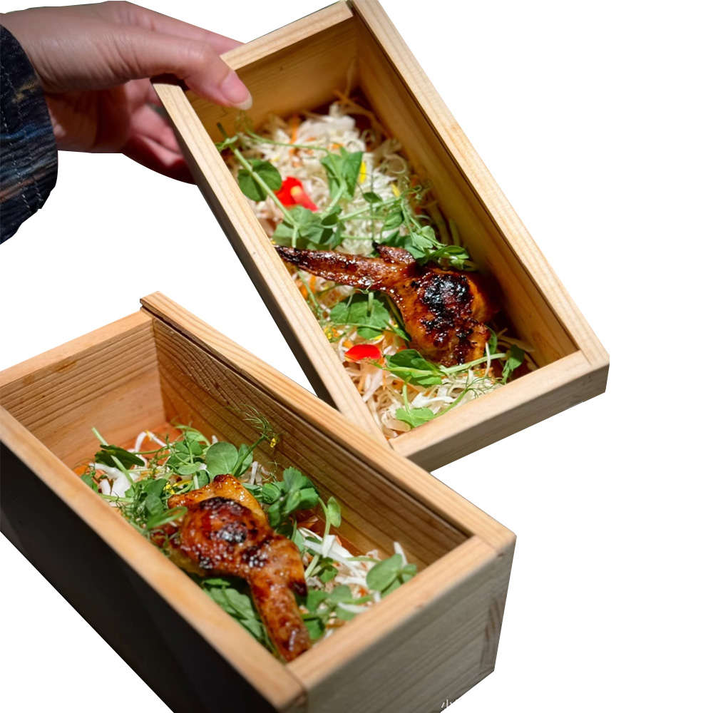 P Series wood boxes with pull out lids are our new lines of food packaging for sushi, sashimi, snacks, deserts, cakes, fruits, etc. there are various sizes that you can choose. These wooden containers are made by high quality pine/paulownia wood, which is eco-friendly and environmentally.