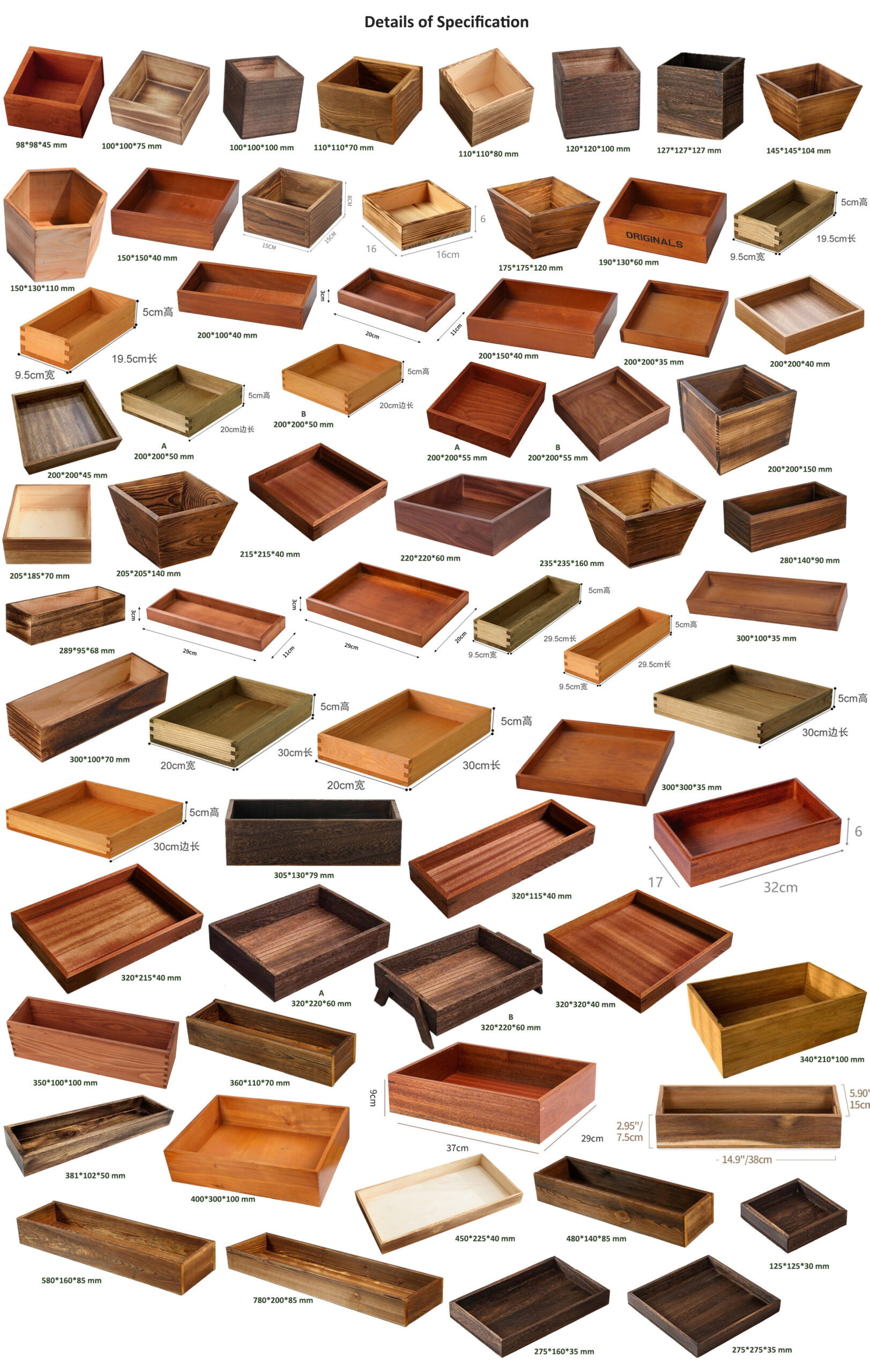 P Series wooden vintage boxes and trays are our new lines of packaging for bread, sashimi, fruits, steak, etc.. there are various sizes that you can choose. These wooden containers are made by high quality pine/paulownia wood, which is eco-friendly and environmentally.