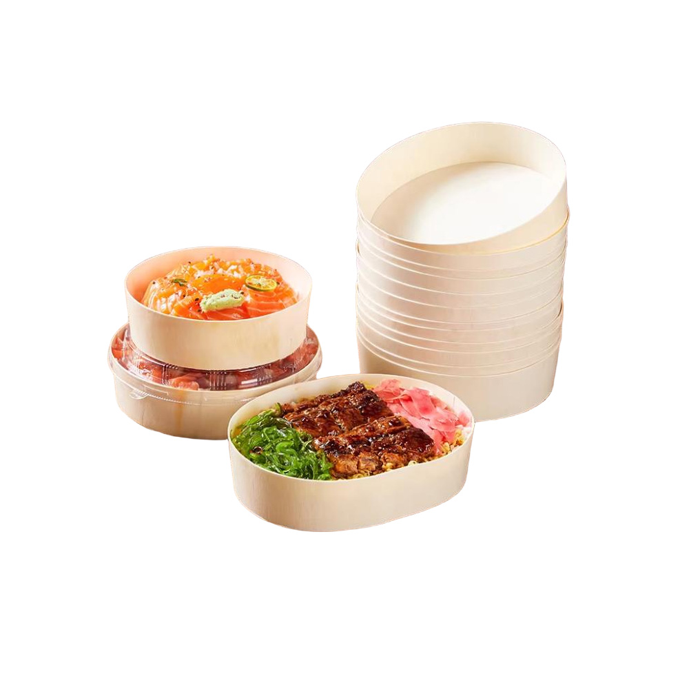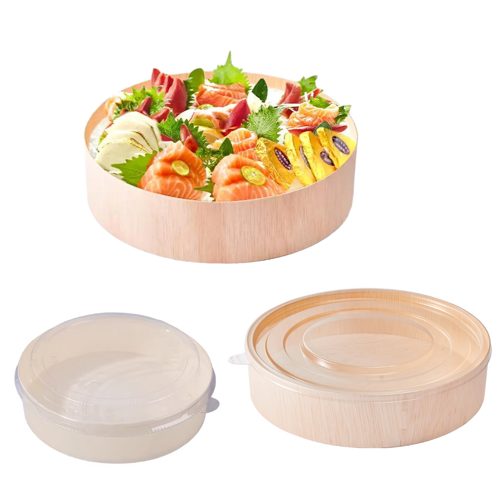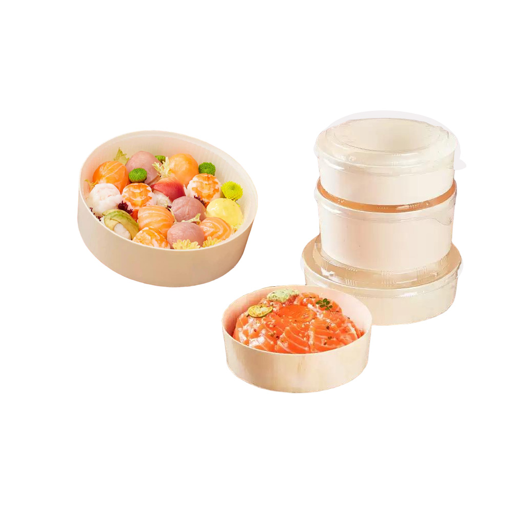 S Series wooden round containers are our new lines of food packaging for sushi, sashimi, cake, rice, etc. there are various sizes that you can choose. These wooden round containers are made by poplar bark, which is eco-friendly and environmentally.
