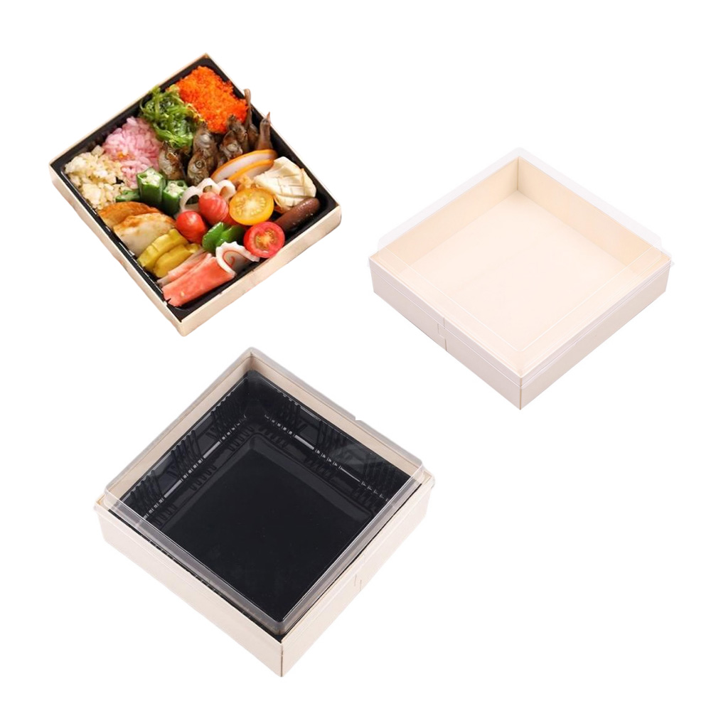 S Series wooden containers are our new lines of food packaging for sushi, cake, fruits, etc., there are various sizes that you can choose. These wooden containers are made by poplar bark, PP and PET, which is eco-friendly and environmentally.