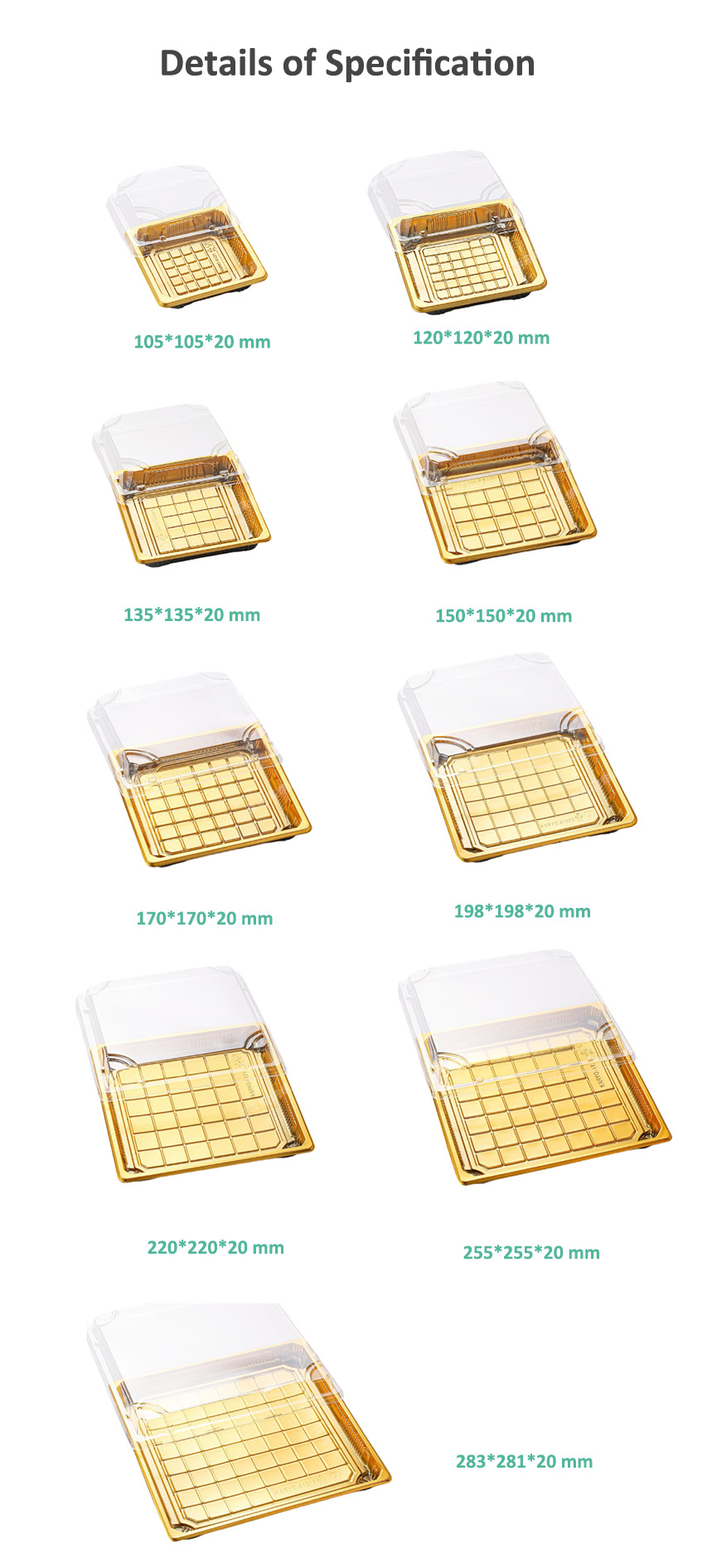 JF Series square sushi containers are our general Japanese food packaging for sushi, there are various sizes and printings you can choose. We also provide sushi containers made of PP, PLA, PET, and biodegradable fiber pulp.